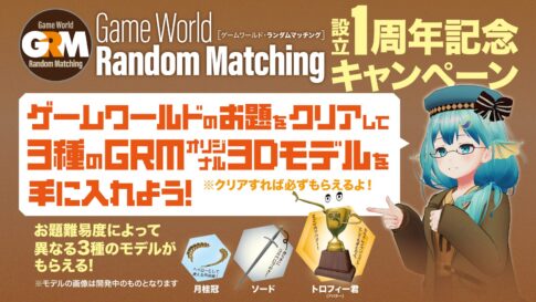 VRChatGameworld Random Matching(略称:GRM)はジャンルを問わずゲームワールドを遊びたい人向けのグループです。 この度はGRM設立1周年を記念してキャンペーン企画を4/11まで開催します。 参加方法に...