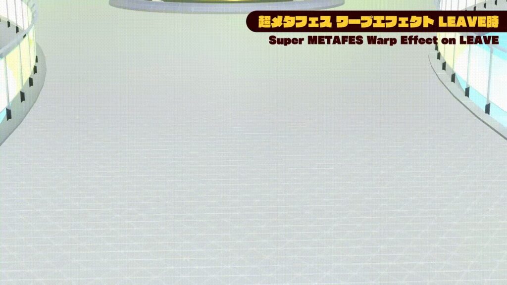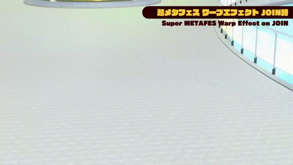 『超メタフェス2026』への来場者特典として、VRChatで使用できるオリジナルの“ワープエフェクト”を来場者全員に無料配布いたします。スポットライトに照らされ登場するエフェクトはワールドに登場する時に注目を浴びること間違いなし!ワールドからの退出時もエフェクトを再生し、プレイヤーの退出を彩ります。