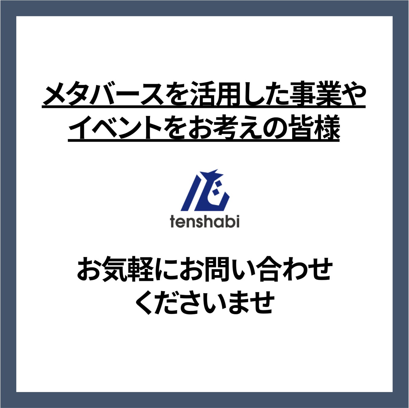 株式会社tenshabi(テンシャビ)はメタバースを活用した事業やイベントをお考えの企業様との事業共同開発やサービス提供に取り組んでいます。メンバーにはメタバースクリエイター、VTuber、ディレクター、演出家など、メタバースでの経験が豊富なメンバーが揃っています。メタバースを活用した事業やイベントをお考えなら、ぜひ一度お気軽にお問い合わせくださいませ。