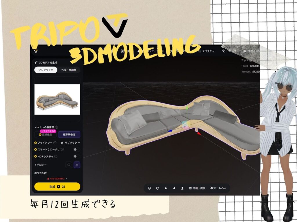 3Dモデルの作成には「Tripo」を使用しました。