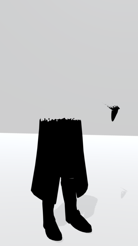 Answererはアバター変更時に、床から黒い影が下から現れ、その直後姿を現し、ログアウト時には影になり下へと消えていきます。