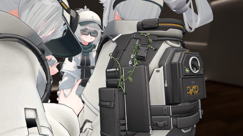 バックパックの作り込みが細けぇ~ カセットテープみたいなのが入ってる。探検する系の生物研究家なのかな。