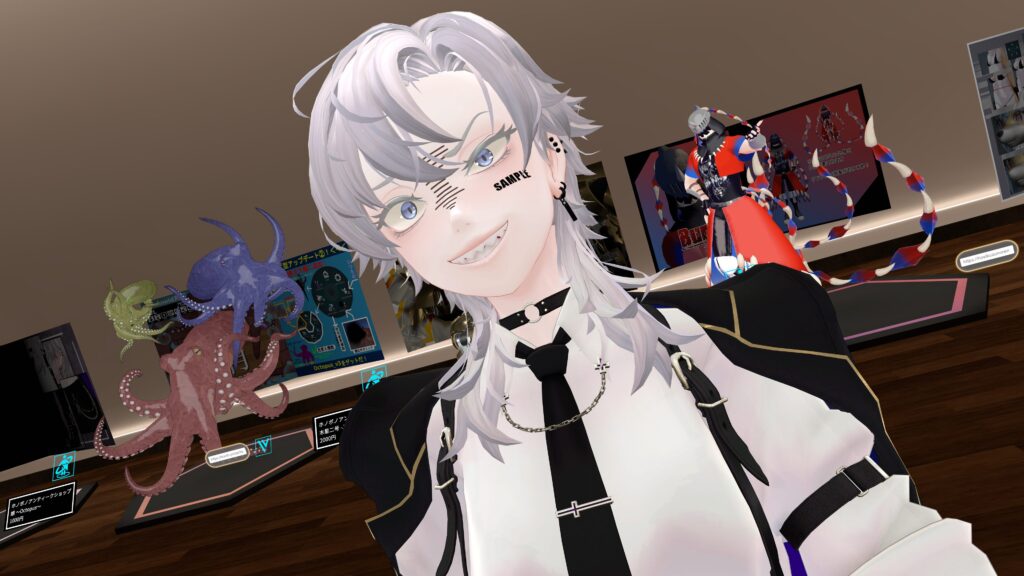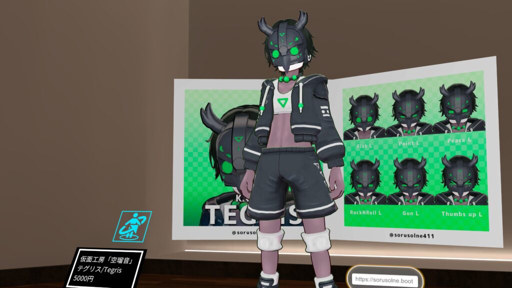 中性的な見た目ですね。服はメニューから脱ぎ着できるけど、仮面は固定なのかな。リップシンクで顎が動くから、仮面の下には顔があるのかなとか想像が膨らみますね。