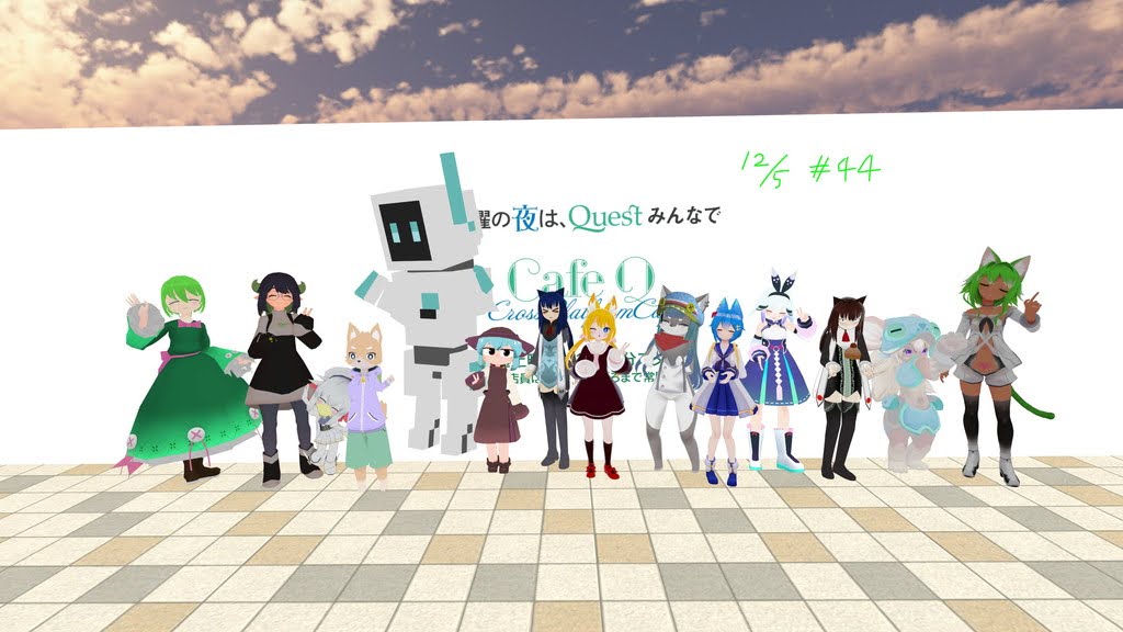 2020年2月15日から毎週土曜日の21:54~22:30の間に営業しているカフェイベントで、開始当初よりクロスプラットフォームすなわちPCとQuest両方での参加が可能なイベントとして続けて参りました。