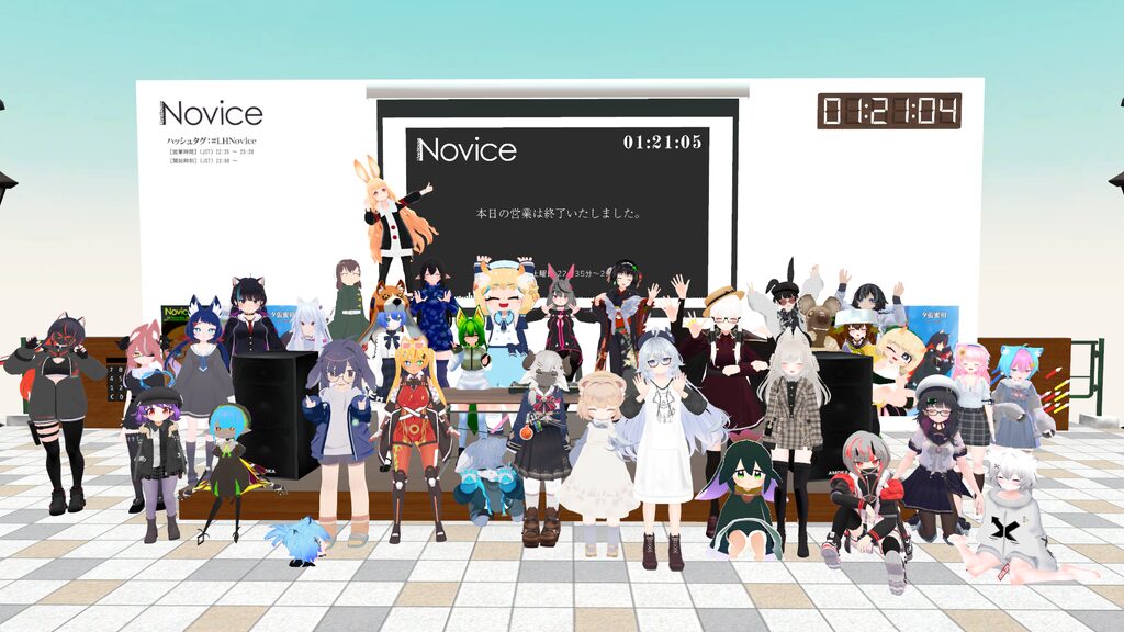 VRChat最初のイベントはCafe Qで、その約1年後にVRDJとして活動し始めたのはNoviceからでした。店主にもご来場頂いた方々にも、本当に始めからお世話になりました。ありがとうございました。