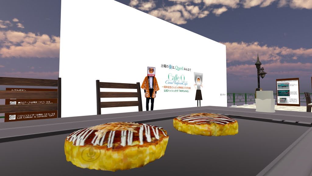 前述の通り、店主Saguziが九州出身かつCafe QのQが九州から来ていることから、福岡発のお好み焼き屋さんである「どんどん亭」様とのコラボレーションを行いました。店内の内装にお好み焼きや公式広報の雉玉かえしちゃんの画像を追加し、約1ヶ月の間特別仕様として営業しておりました。