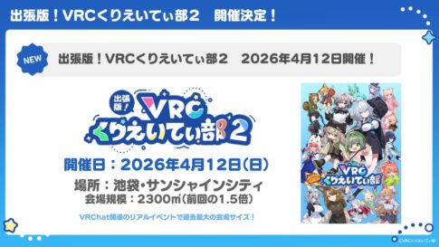 【2026/4/12開催】VRSNSオフライン即売会「出張版!VRCくりえいてぃ部2」開催決定&協賛企業募集開始!【寄稿】