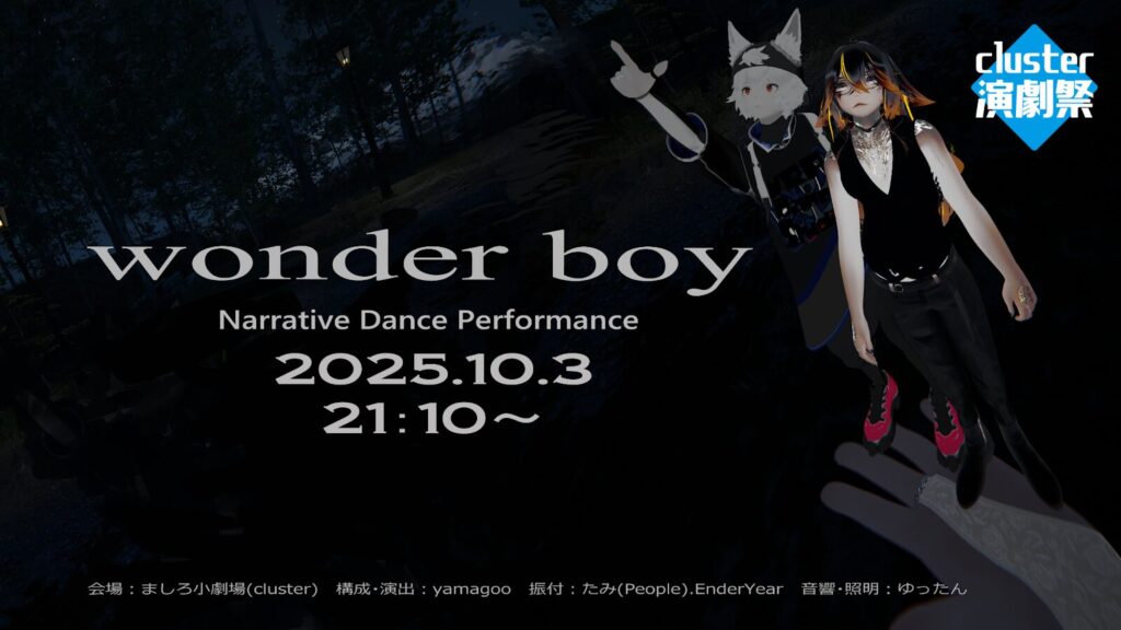 近年盛り上がりを見せるVR演劇。主にVRChatでの公演が多い中、clusterでも沢山公演が行われて欲しい!と思った主催者。演劇祭を催すことでclusterでの公演開催のきっかけになれば!と思い開催を決定いたしました。