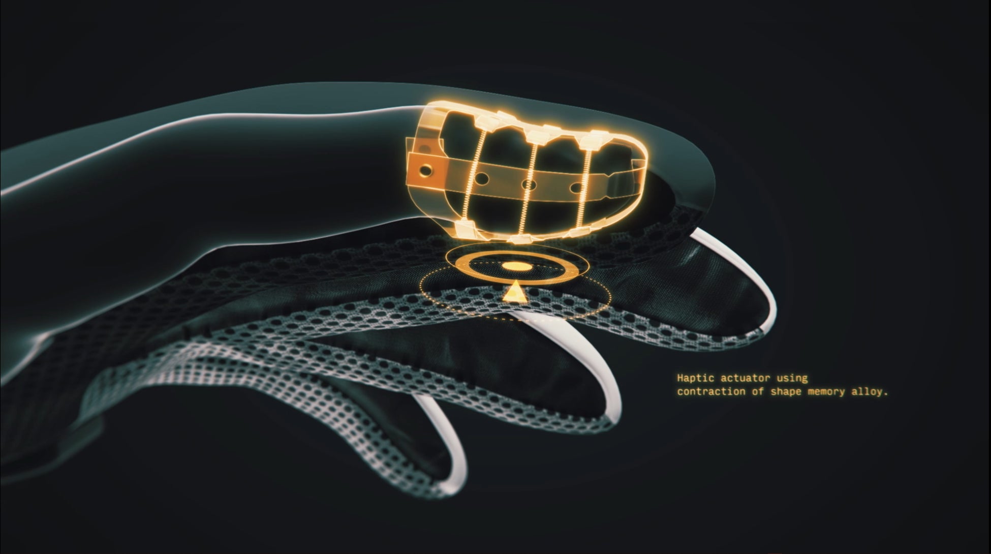 形状記憶を使うことで既存の振動モータを使ったグローブよりリアルな触覚を再現しつつ、コンパクトなデバイスにすることを可能としています。