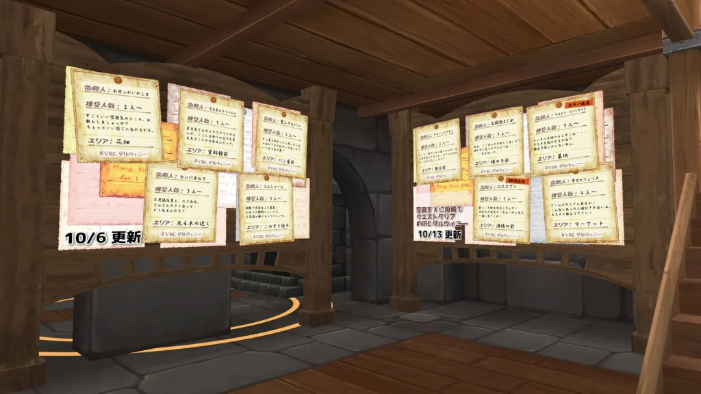 VRChatワールド2025年10月27日VRChat始めました。でも何をすればいいか分からない……そんな時は『冒険者ギルド ダルウィニー』でクエストをこなしてみませんか?【VRChatワールド紹介】