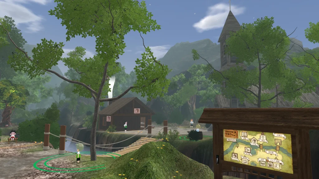 『ダルウィニー』のワールドはコンパクトな村です。メインとなるのは後述するクエストの“受注”ですが、それ以外にもパン屋や資料館などもあり、ワールド自体を探索するのも楽しいですよ。
