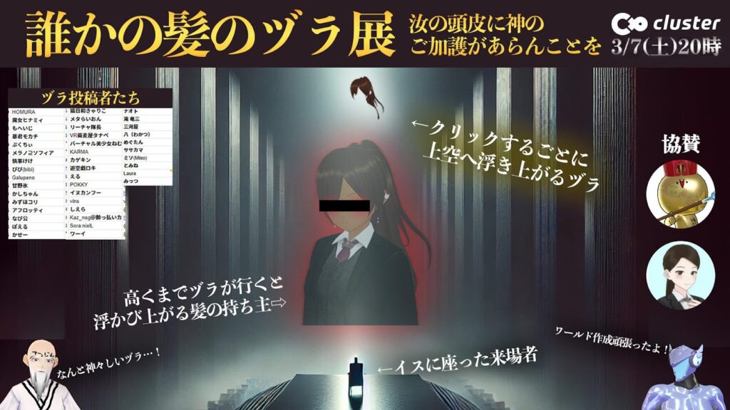 エンタメ企画職人てつじんが、ヅラ文化のさらなる発展を讃え、clusterにて体験型展示イベント『誰かの髪のヅラ展』を2026年3月7日(土)20:00より開催します!