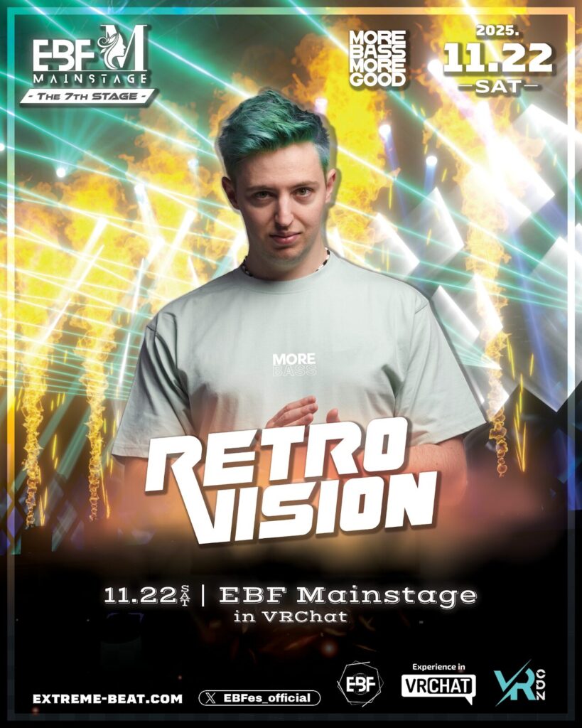 VRChatにて11/22に開催される野外フェス「Extreme Beat Festival(EBF)」に、世界的ダンスミュージックアーティストであるRetroVision の参戦が決定しました。