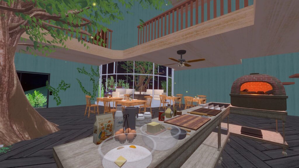 ほかのお客様はパン作りをながめるもよし、ハーブティーを飲みながらエルフやお客様同士雑談するもよし。ゆったり過ごしていってくださいね。