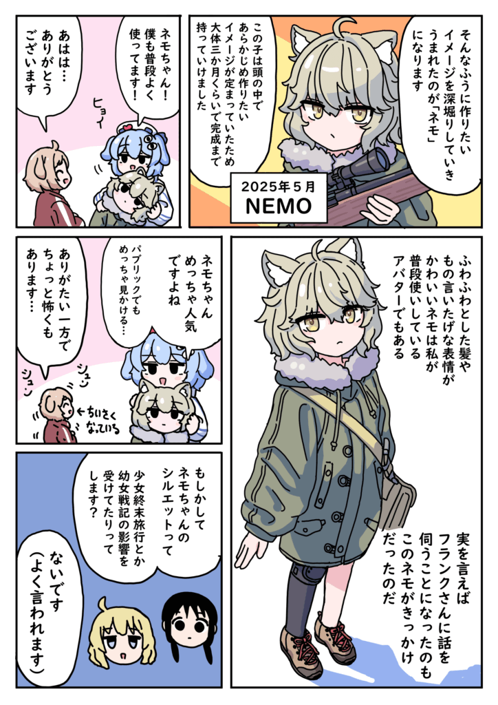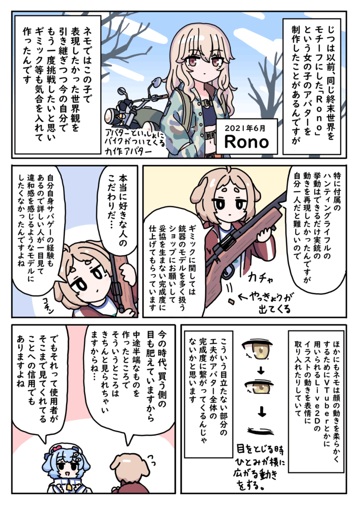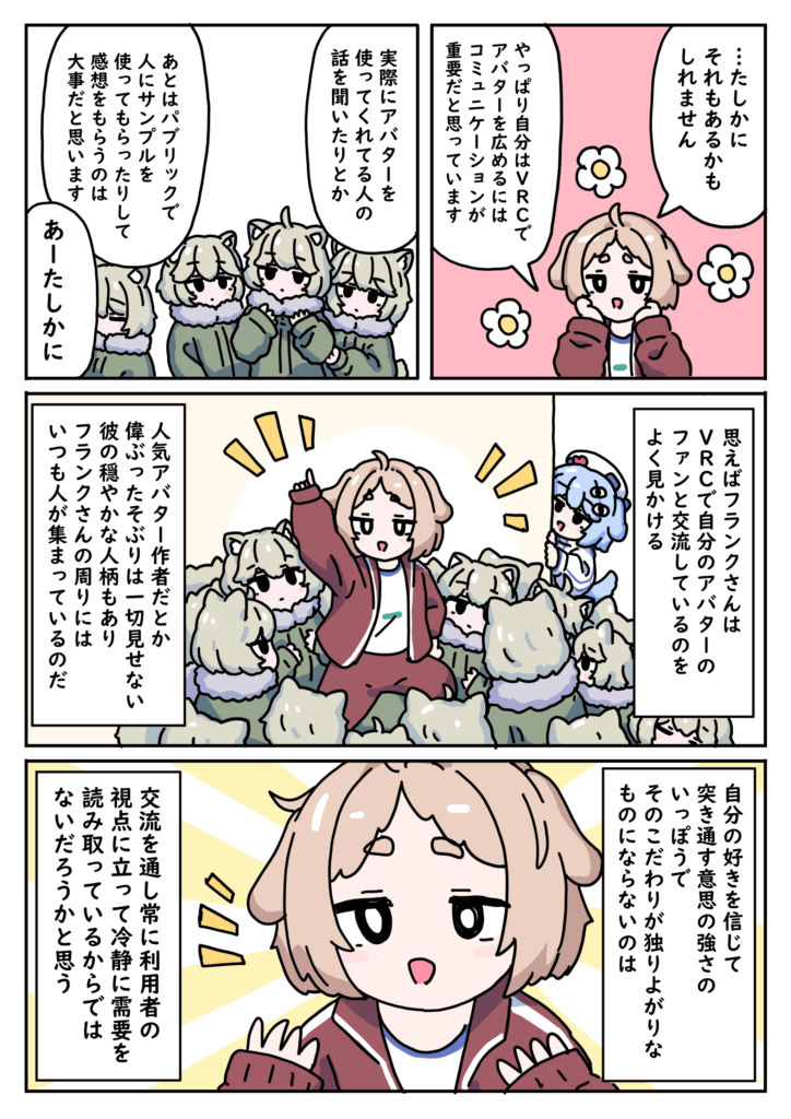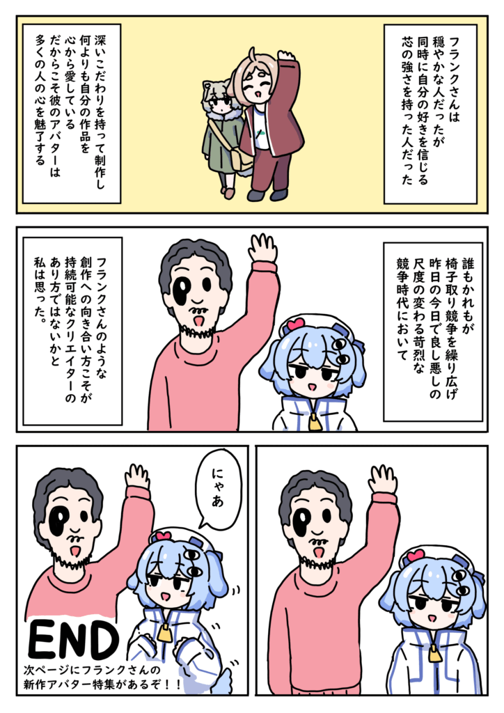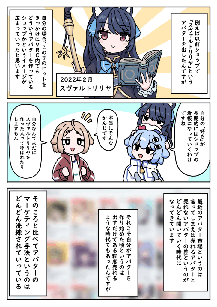 スヴァルトリリヤ』『Nemo』などの人気アバターを手掛けるFLANKさんへ、自身でもアバター製作を行うVRC漫画家ヨノイがインタビューを実施。その模様をマンガでお届けします。