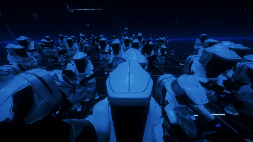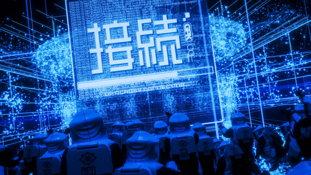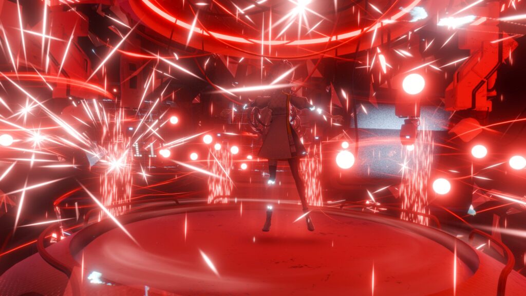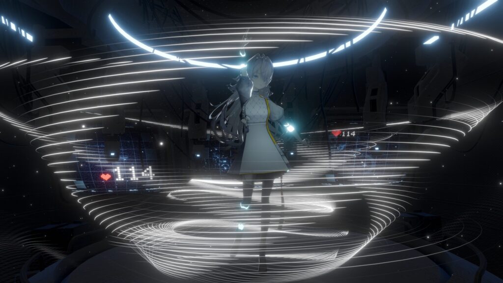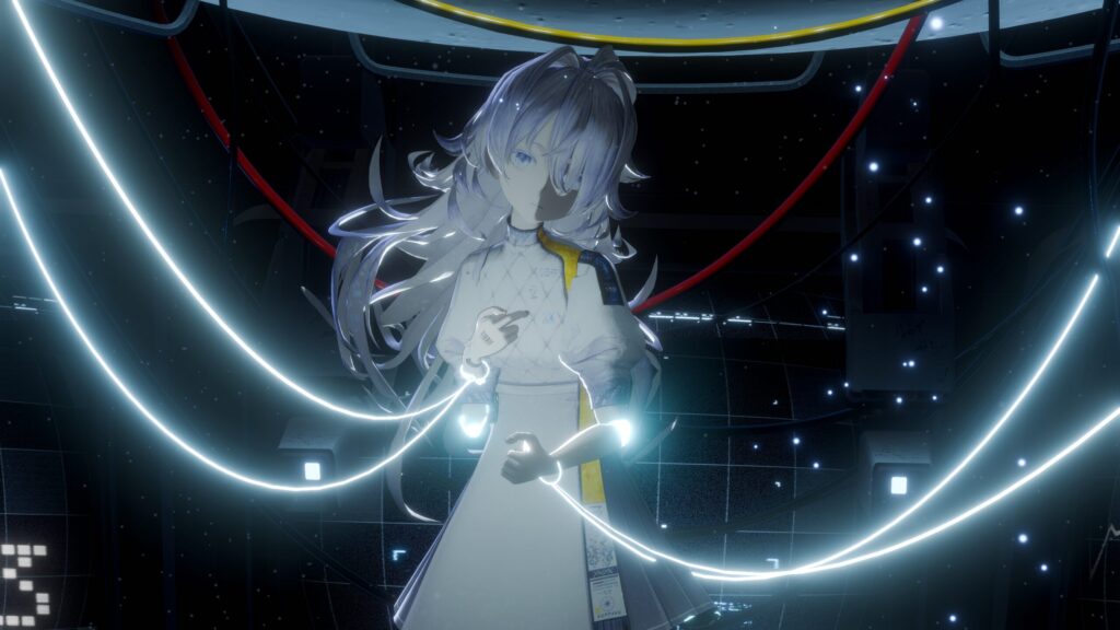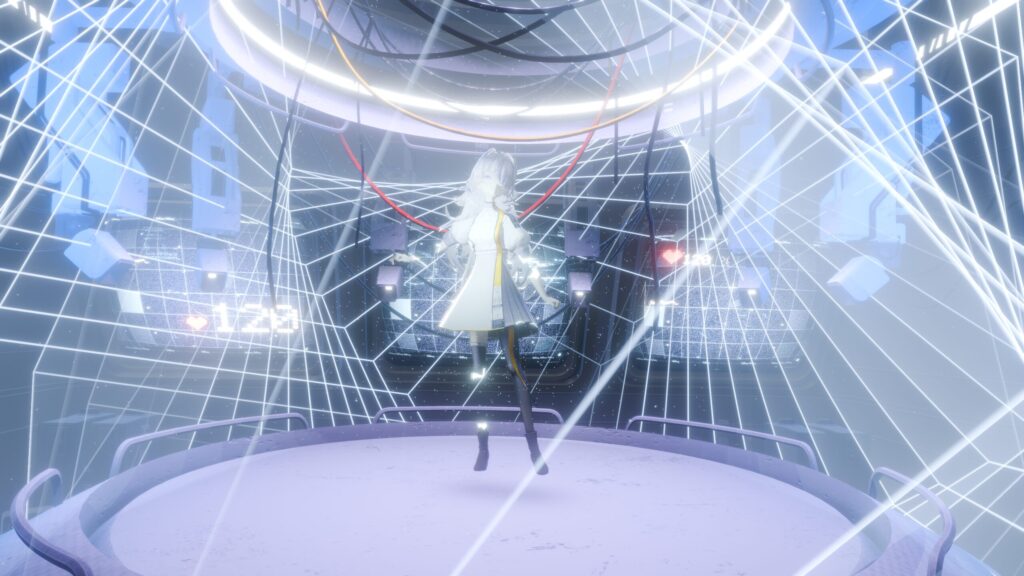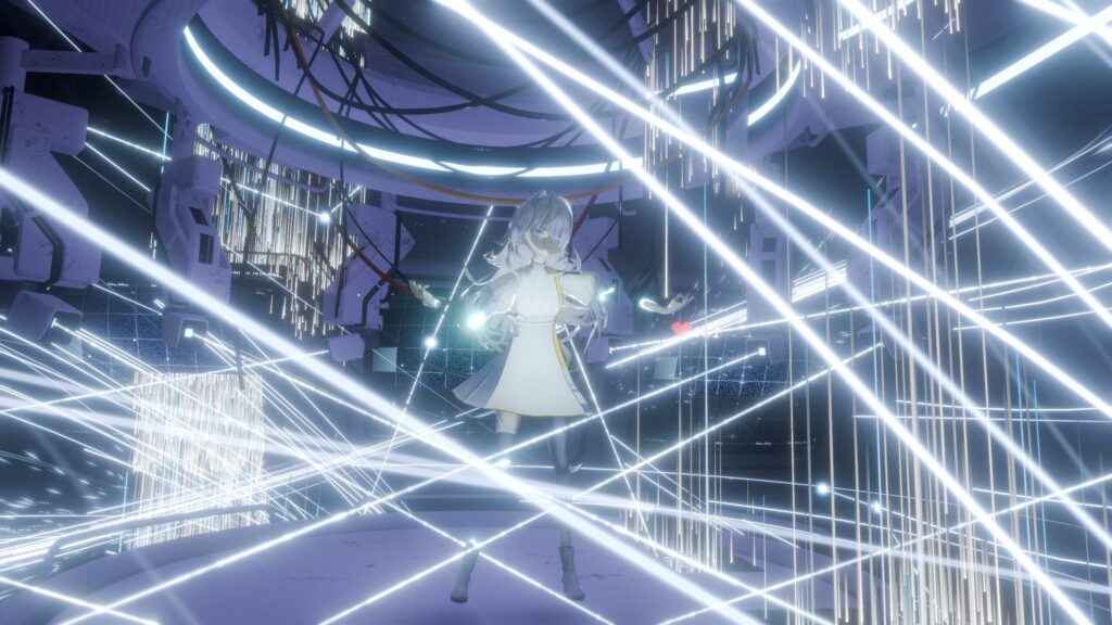 VRChatで開催される月白 累のソロライブとしては初めて。複合イベントとしては2026年1月11日にリアルと同時開催となった『PULSE DOME』以来となり、その反響もあってか、本ライブも大きく注目を集めていました。開場の時間になると同時にインスタンスはすぐフルになり、ライブ指定のアバター(以下、防護ユニット)への変更も大きくラグが生じるほどでした。