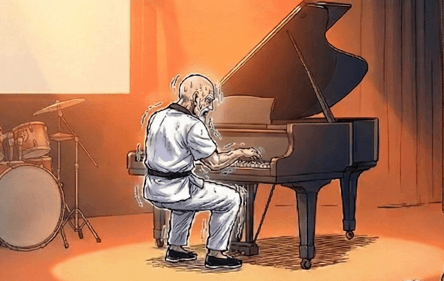 違う…彼は空気椅子をしているのだ。空気椅子をしながら、ピアノを演奏しているのだ。