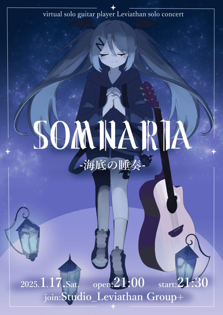 〝SOMNARIA-海底の睡奏-〟(ソムナリア-かいていのすいそう-)とは、LeviathanによるVRChatでは2回目となるソロライブ。観客が参加している感覚を味わえる物語進行形式のライブであり、観客は各々がランタンのオブジェクトを持って参加する。朗読による物語の進行と曲と連動した演出が特徴。