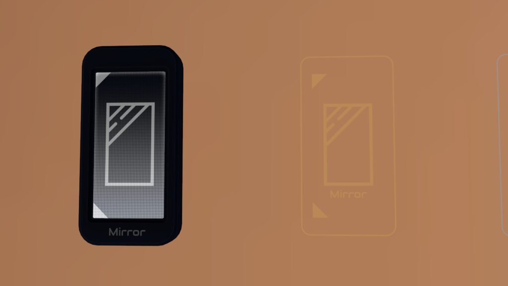 ミラーというと、遠くにいるのにつけっぱなしになっていて重くなったりしがちだったのですが、このミラーは距離で自動表示/非表示するミラーになっています。