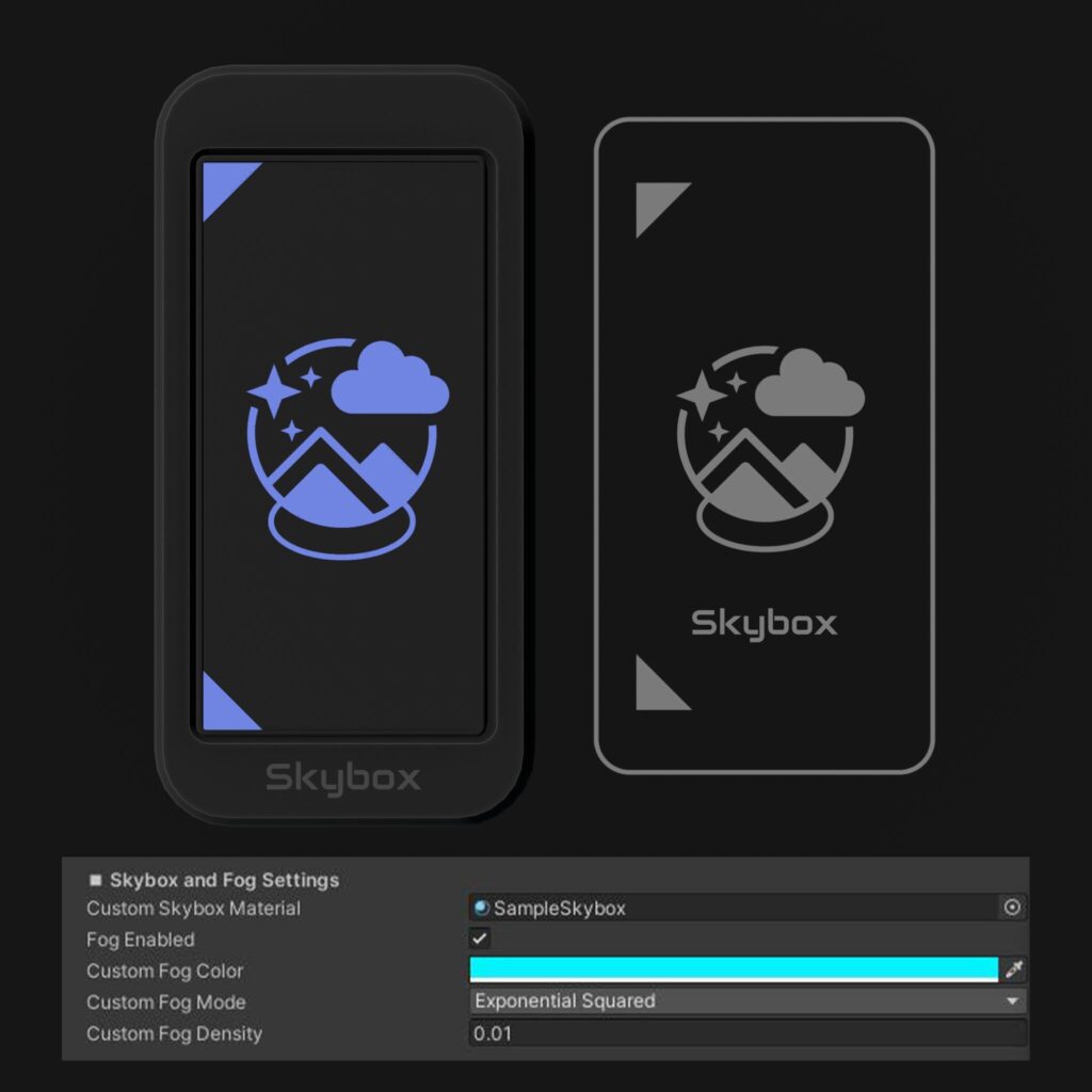 スカイボックスを切り替えられるPrefabです。これがアクティブ状態になっているとスカイボックスを設定したものに切り替えることができるようになります。単純にスカイボックスだけ変えると馴染まないことが多いので、Fogも合わせて切り替えられるようになっています。