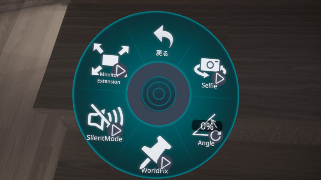 「setting」では、「Selfie」で自撮り撮影が出来たり、「WorldFix」でワールド固定が可能になっています。