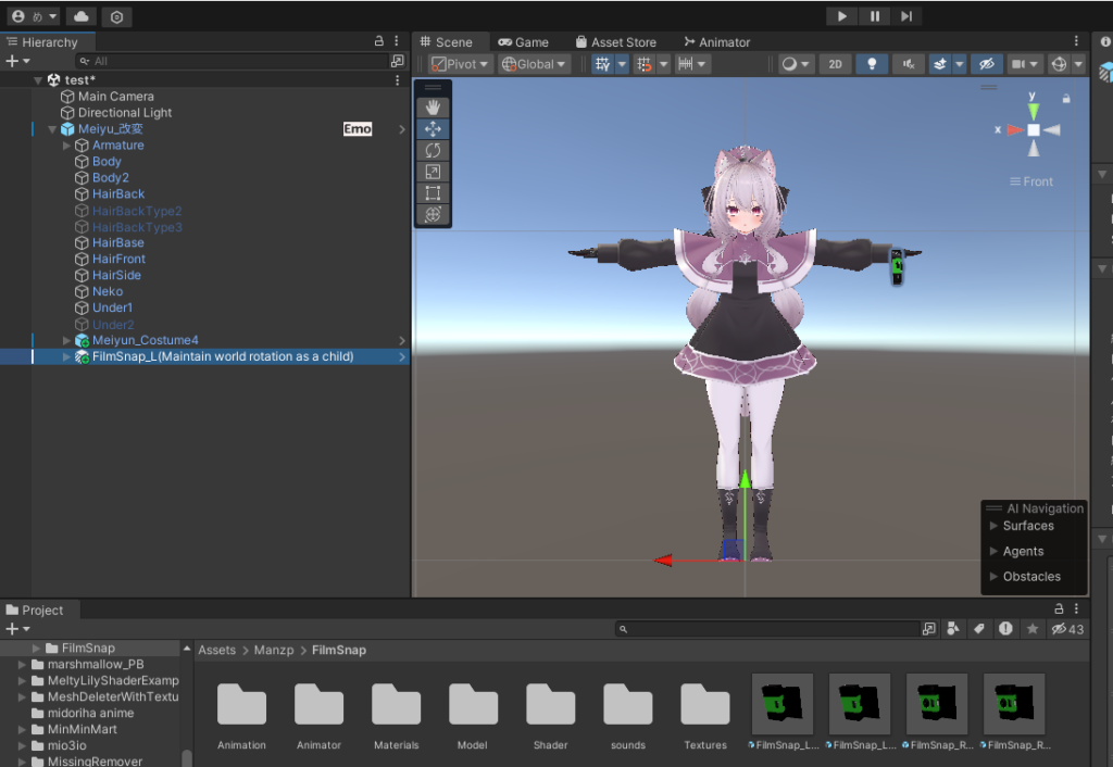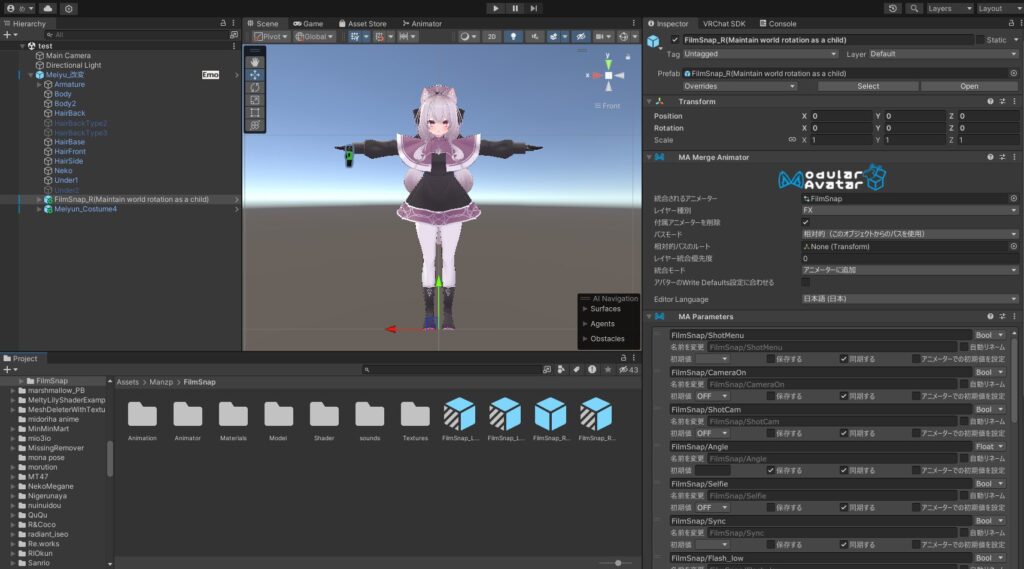 unityでの導入もとっても簡単! 入れたいアバターの直下にギミックを配置して、手に合わせてカメラの位置を微調整するだけで完了します。