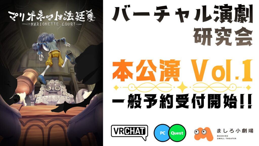 2026年4月20日より、遂にVR演劇団体「バーチャル演劇研究会」による「本公演 Vol.1 『マリオネット法廷』」の予約受付がスタート!!