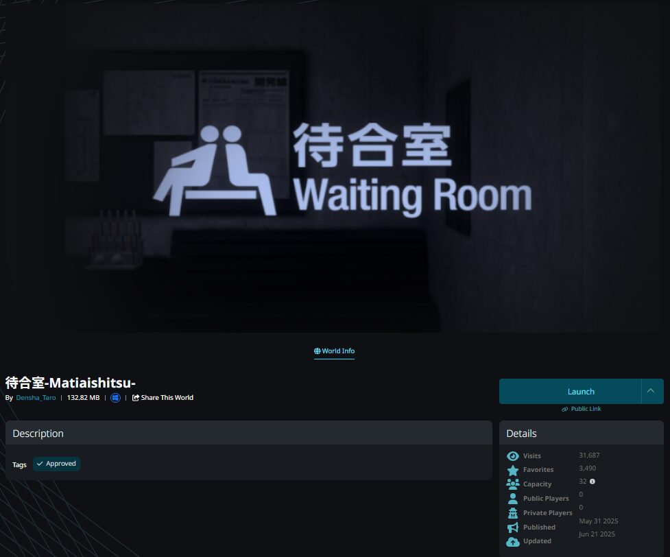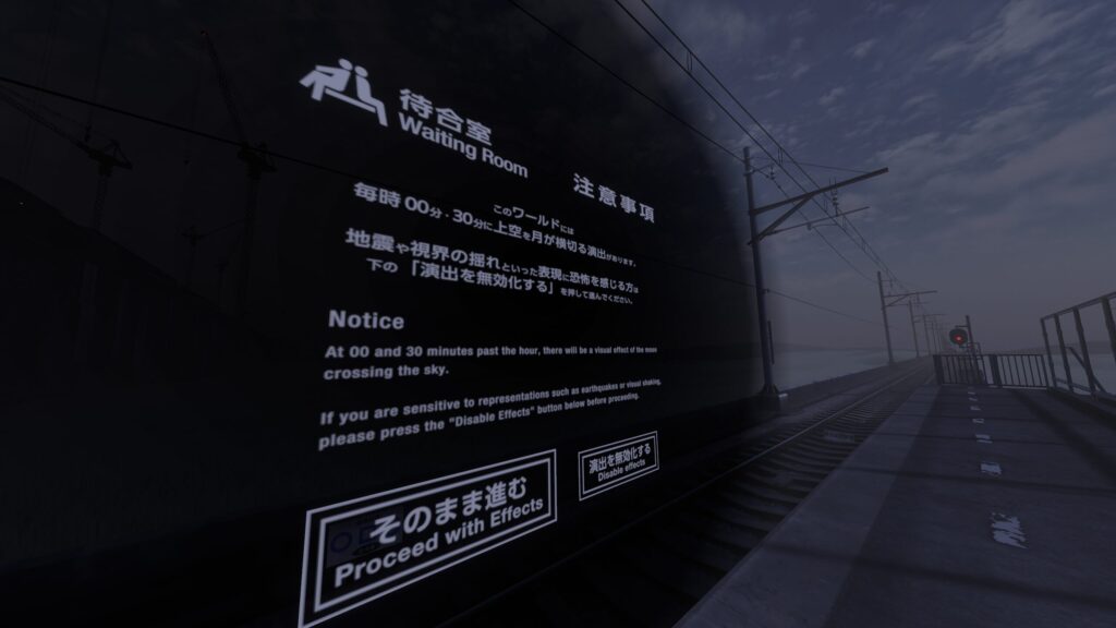 VRChatワールド2025年10月31日生存を求めつつ、人々が終末を待っているかのような世界『待合室-Matiaishitsu-』【VRChatワールド紹介】 VRChatワールド2025年10月31日生存を求めつつ、人々が終末を待っているかのような世界『待合室-Matiaishitsu-』【VRChatワールド紹介】