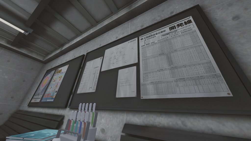 現代日本でも見かけるような馴染みのある駅の作りとなっていますが、周囲の非日常な風景が終末感漂う世界観に引き込んでいます。