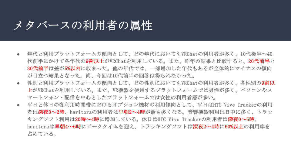 バーチャルライフマガジンが独自に実施している調査『メタバース大規模調査』では、メタバースの世界を楽しむ皆様の年代や環境、ニーズや経済力など、多角的な質問に回答を頂き、皆様に共有する事を目的としております。