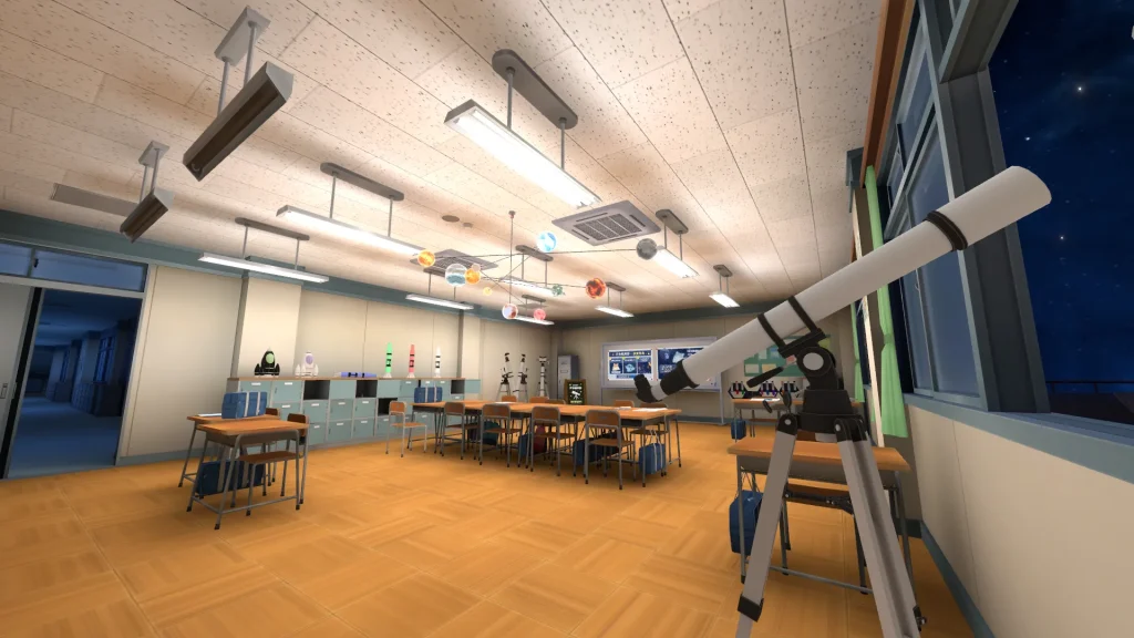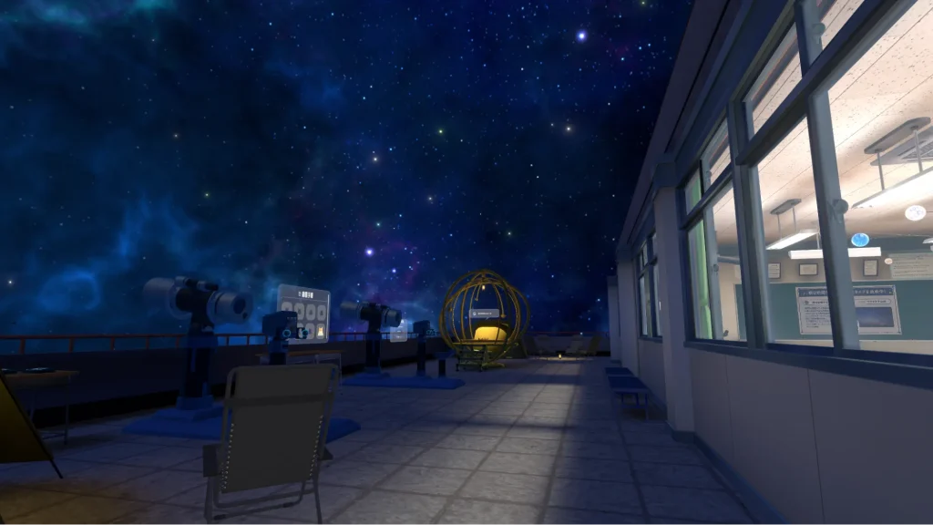 本ワールドは、「宇宙と繋がる部室」をテーマにした、会話と収集を楽しめる「チル&ゲーム」ワールドです。Meta Quest単体でも動作し、多くのユーザー様に楽しめる天体観測体験をお届けします。