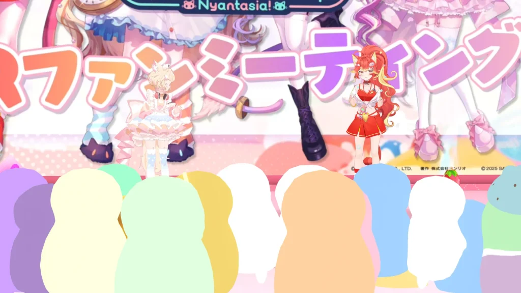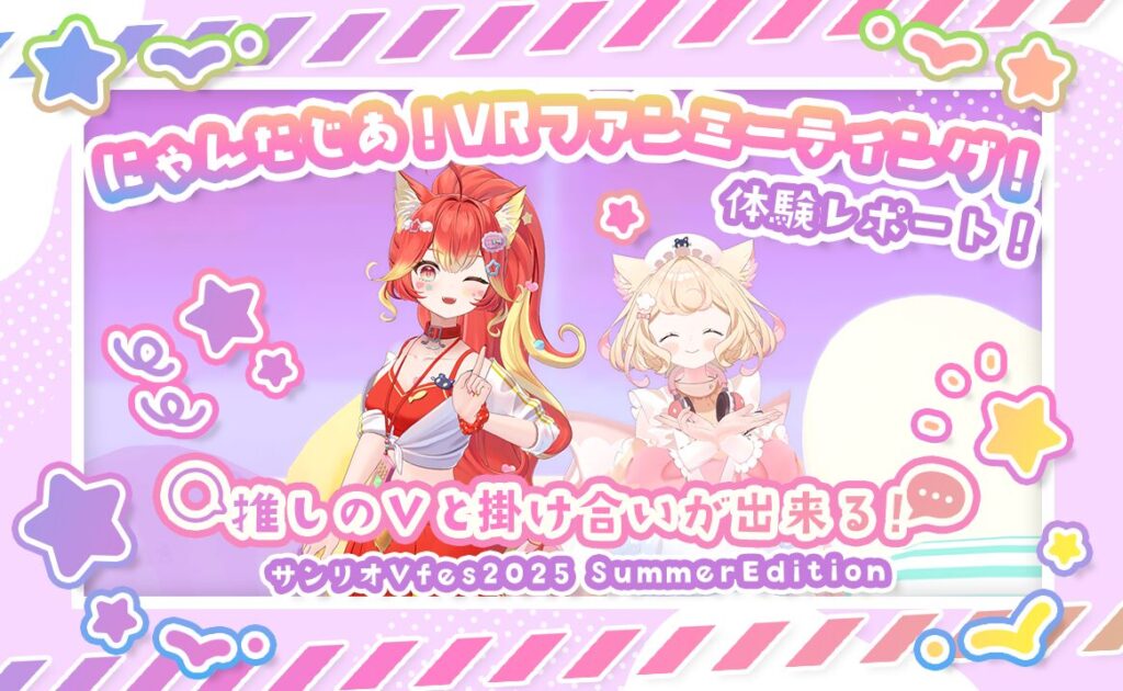 2025年9日20日、『サンリオVfes2025 SummerEdition』の期間中イベントとして『にゃんたじあ!』のVRファンミーティングが開催されました。本イベントはVRChatで直に『にゃんたじあ!』の皆さんと触れ合えちゃう!というファンにはたまらない機会です。その人気ぶりは、追加回も開催されるほど!