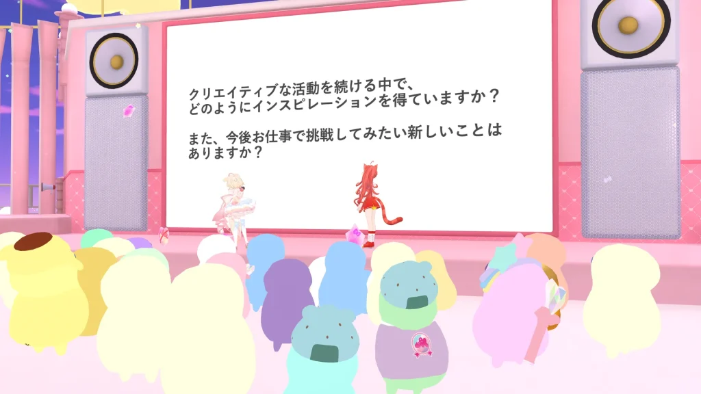 「VRChatやVRコンテンツを通して今後どんな活動をしてみたいですか?」「クリエイティブな活動を続ける中で、どのようにインスピレーションを得ていますか?」など様々な質問への回答がファンたちの「目の前」で行われました!