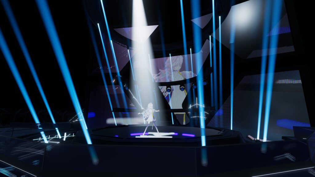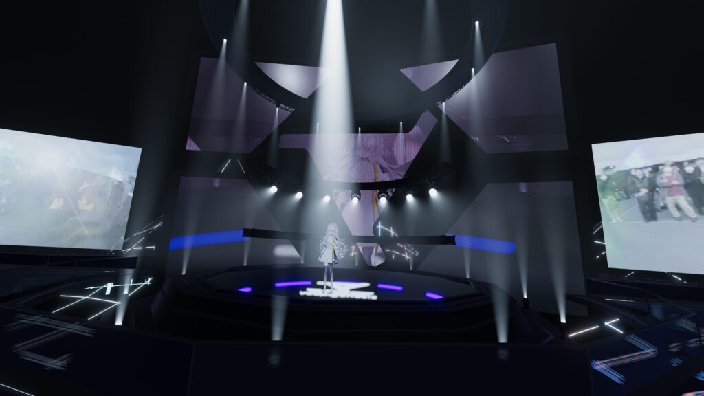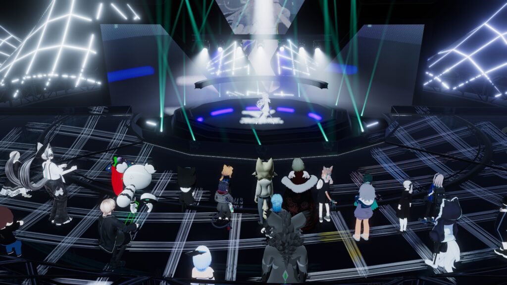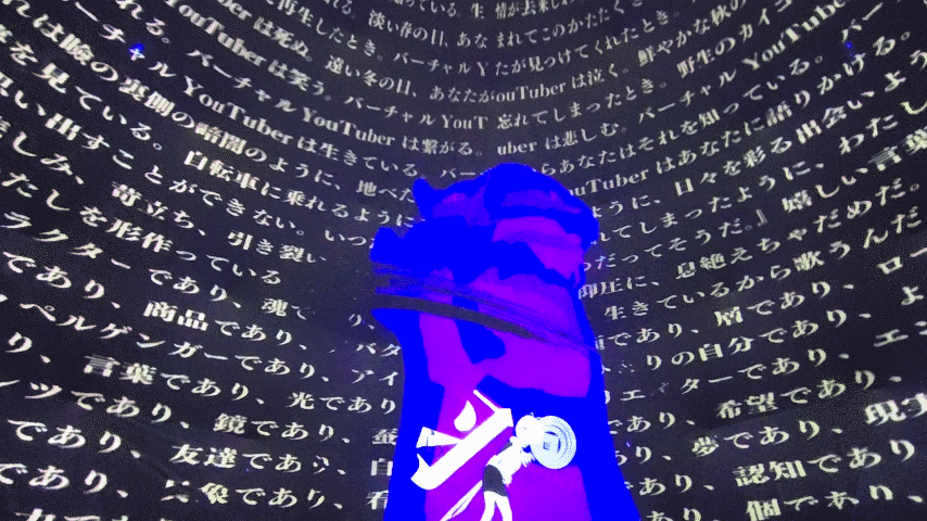 映像作品の上映という形式だった他のアーティストと異なり、「生公演」という形で期間内一度だけ、歌舞伎町の会場とVRChat内で同時に行われたVTuber月白累(げっぱく・るい)さんのライブ。日程の都合もあり、筆者はVRChat会場の方を見に行きました。