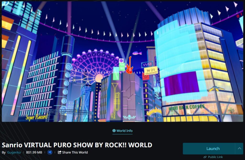 MIDICITYに来たぞ~~~!『SHOW BY ROCK!! WORLD』は、VRChat上に展開されているバーチャルテーマパーク、『Virtual Sanrio Puroland』の新エリア。ここでは、『SHOW BY ROCK!!』に登場する『Under North Zawa(アンダーノースザワ)』と『Shibuvalley(シブバレー)』を散策したり、パフォーマンスを楽しんだりできます!ファン必見の本エリアで、先行体験の様子をお届けします!