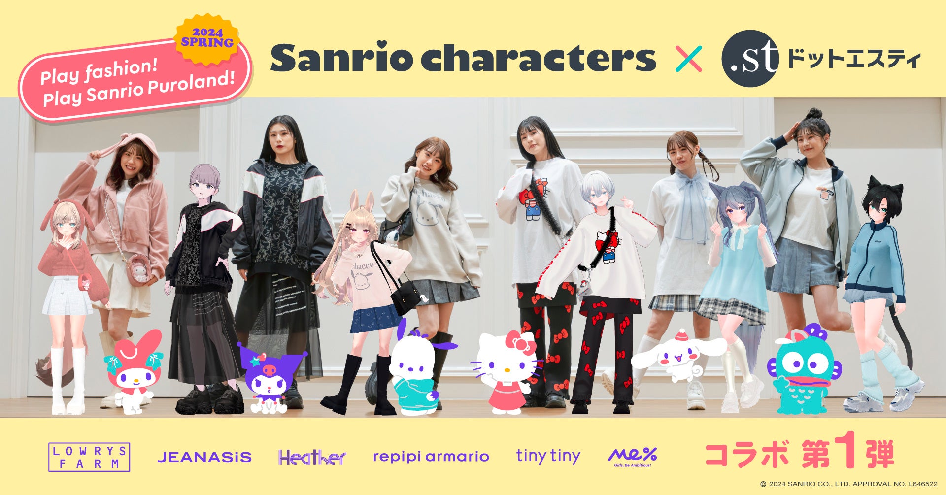 ドットエスティは、推し活とファッションの両方を楽しんで頂きたいという想いから、今までのキャラクターグッズにはない、推しのキャラクターとのバウンドコーデを楽しむことができるサンリオキャラクターズとのコラボアイテムを発売。今回の第一弾アイテム発売を皮切りに、年間を通してコラボを実施いたします。