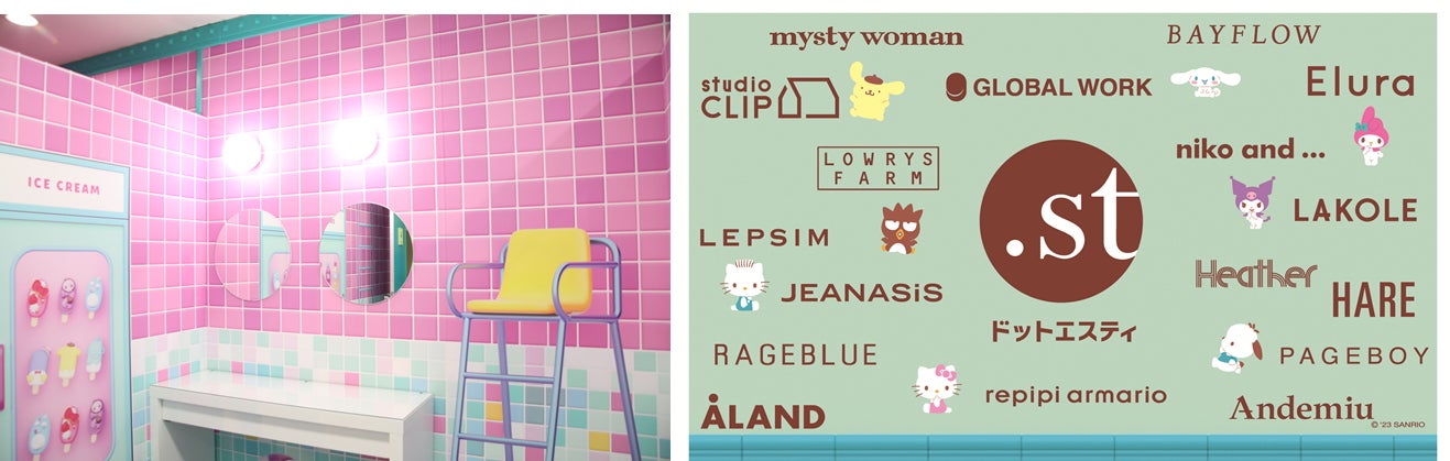 リアルアイテムは、ドットエスティ、ドットエスティストア、各ブランド店舗にて、メタバースアイテムはBOOTHにて2024年2月19日(月)より展開。さらに、株式会社サンリオエンターテイメント(本社:東京都多摩市)が運営するサンリオピューロランド内にドットエスティコーナーも誕生。コラボアイテムの販売に先駆けて本日2月15日(木)に更衣室「DRESSING ROOM」がオープンします。更衣室の外壁には各ブランドロゴが描かれたスポットも。更衣室は、コラボアイテム購入者だけでなくどなたでもご利用いただけます。
