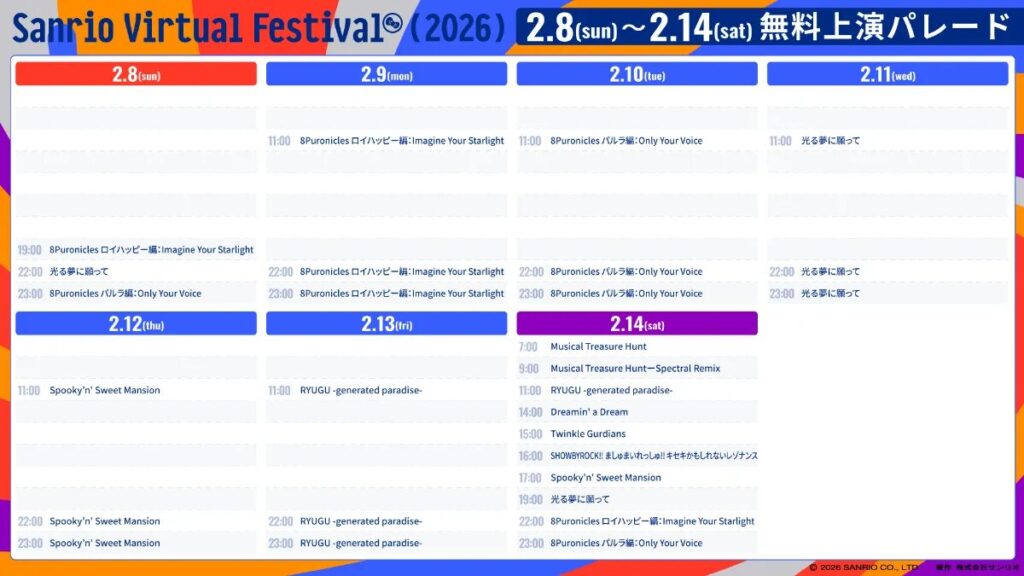 2月8日(日)から始まるVRChatの音楽フェスイベント『Sanrio Virtual Festival 2026(サンリオVfes 2026)』