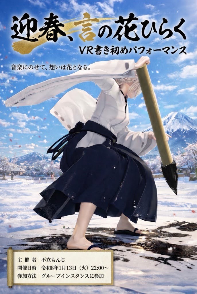 VRChat2026年1月8日お正月だよ全員集合!VR書道パフォーマンス&書き初め体験イベント【寄稿】