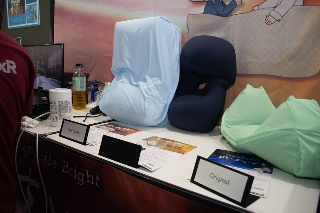「ゲームショウ」なのに、枕の展示。ブースに訪れた方も「枕!?」といった表情。