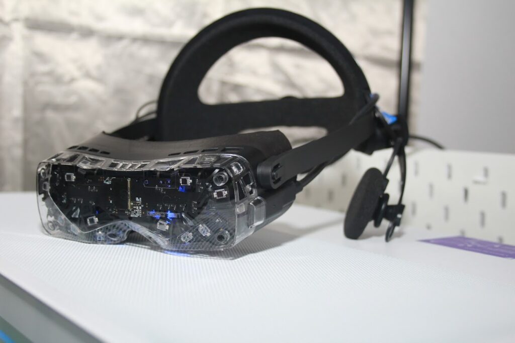 体験で使用する『Bigscreen Beyond 2』は、一般に普及している『Meta Questシリーズ』や『PICOシリーズ』などが重さ500gを超える中、本体部分だけで重さ107gという驚異的な軽さが自慢。OLED搭載で視野角も116度と広いのも特徴です。