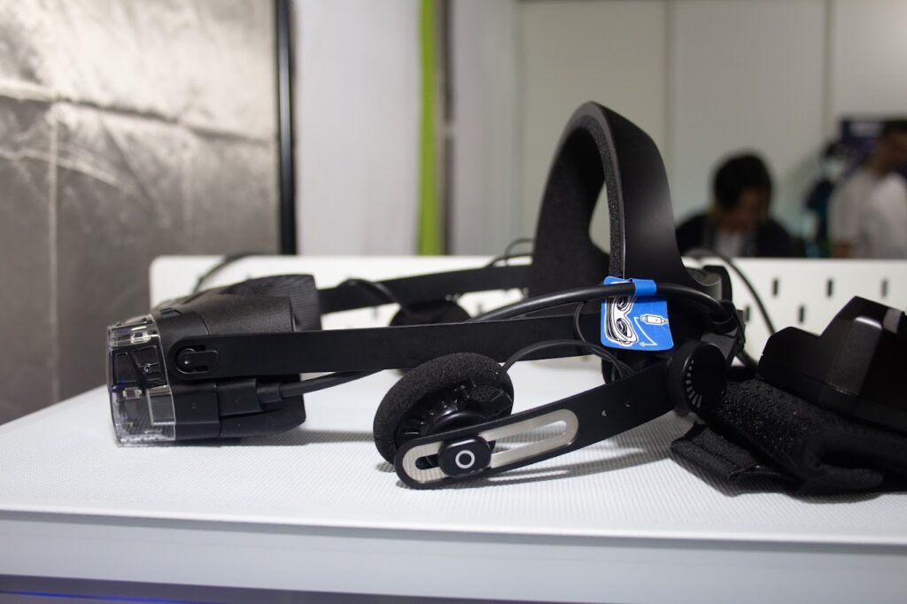体験した感想は「驚きの軽さ」の一言。従来のVR機器と比べると、ほとんどメガネをかけているような感覚。トラッカーも軽く、すべてがワイヤレスな環境は異次元の体験でした。
