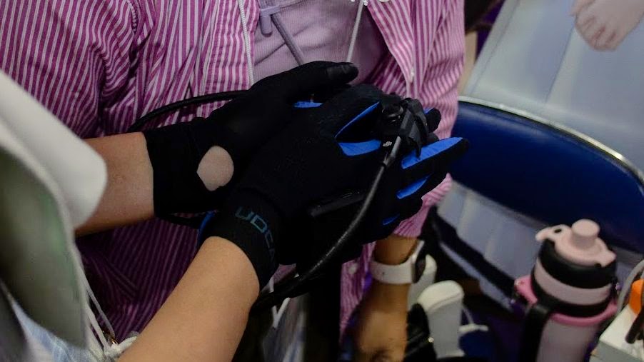 『UDEXREAL』さんのブースでは、専用グローブを使用したハンドトラッキングの体験ができます!
