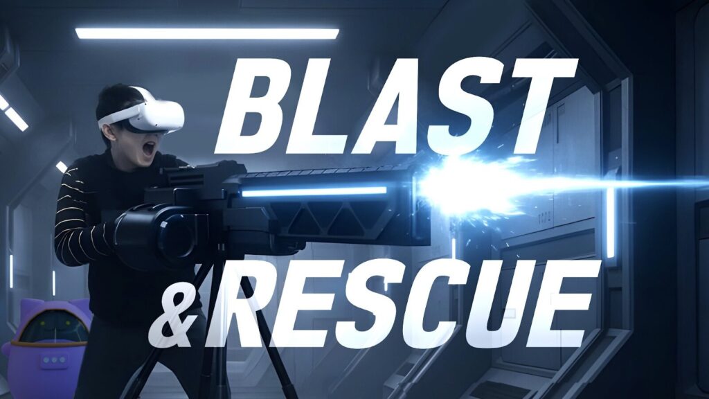 VR×FPS!強力な反動を味わえるマシンガン型コントローラーでエイリアンを撃破し、さらわれた猫を救え。多彩な武器強化&迫力のボス戦!