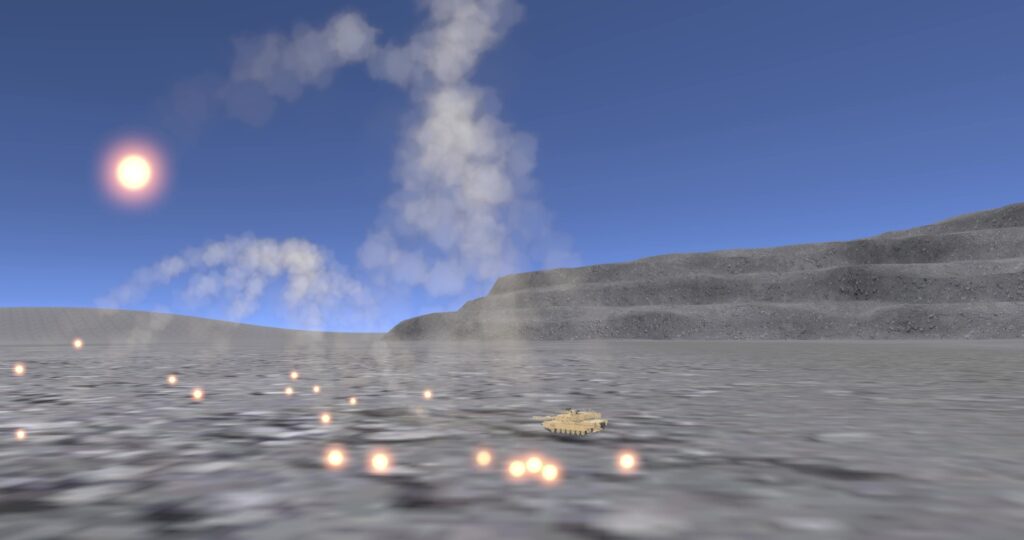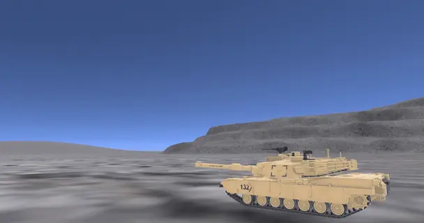 右手のハンドサインをFinger Point(指さし)にすると、M1A2エイブラムスが指さす方へ前進! 土煙をあげながら爆走していきます。