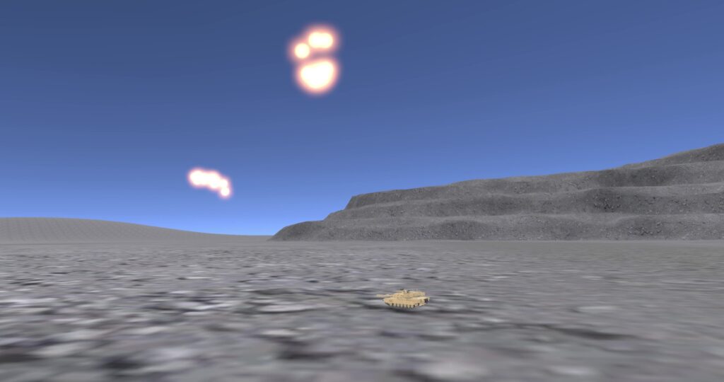 左手では砲塔の向きを変えることができ、Hand Gunにすると主砲を発射!