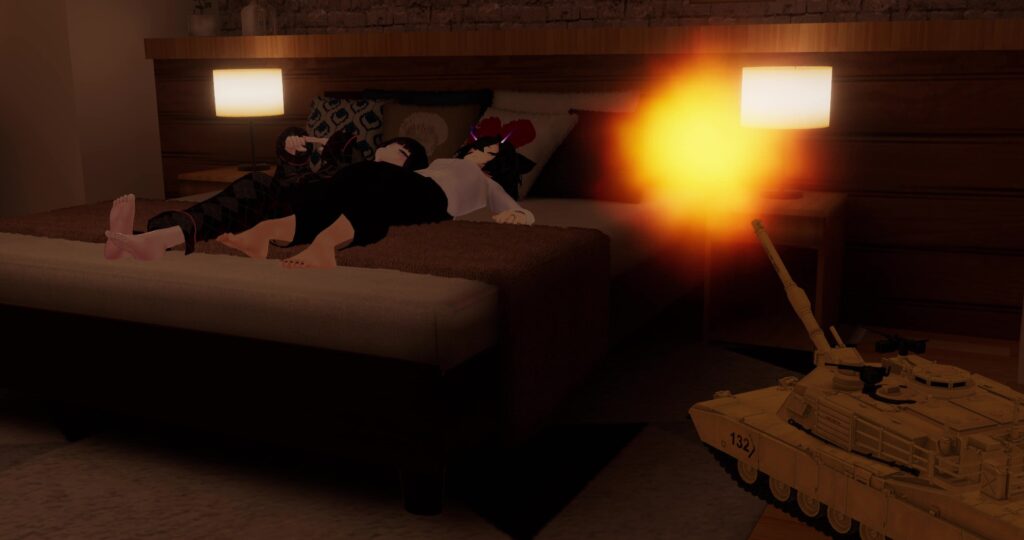 V睡してるフレンドに寝起きドッキリしたくなる時もありますよね。そんなときも『ユビークルM1A2エイブラムス』の出番です! 砲撃音で気持ちよく起こしてあげましょう。