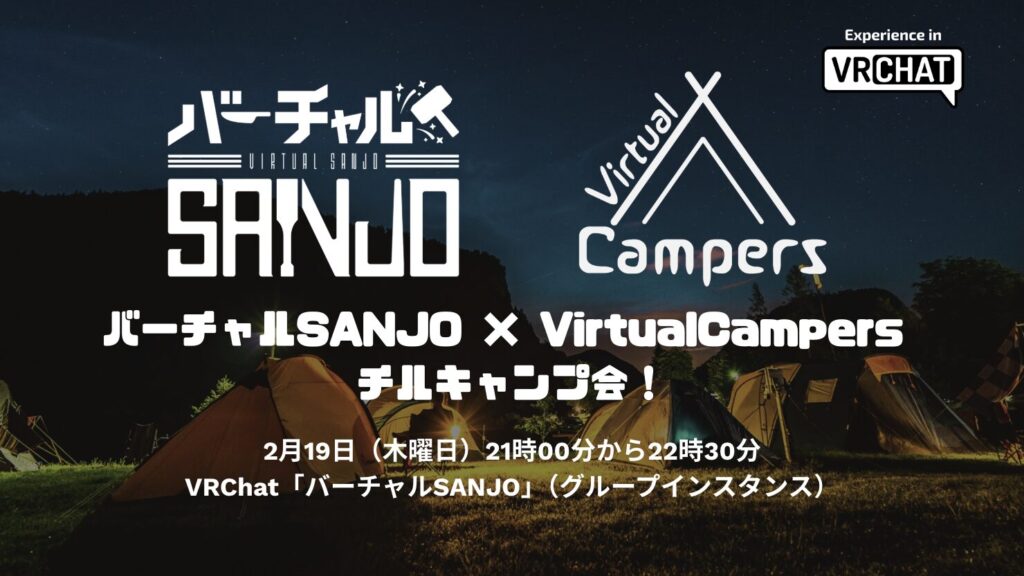 VRキャンプコミュニティとして活動している私たち「Virtual Campers」は、新潟県三条市が展開する「バーチャルSANJO」との特別なコラボイベントをVRChatにて開催しました。