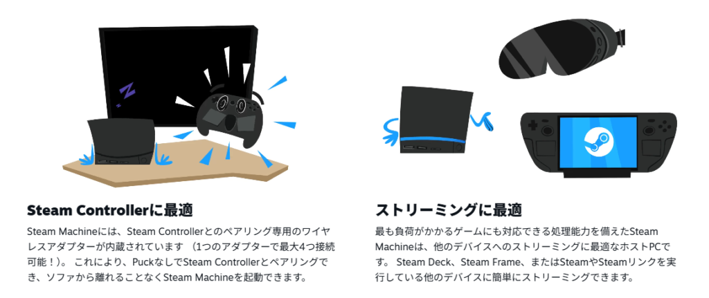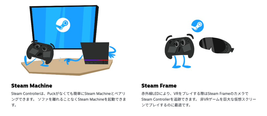 もちろん『Steam Frame』にも対応しています。VRヘッドセットの中には、コントローラーとペアリングできるものもありますが、公式から対応版が出るのは珍しいですね。PCいらずで、大画面でのんびりゲームが出来る……そんな光景が浮かびます。