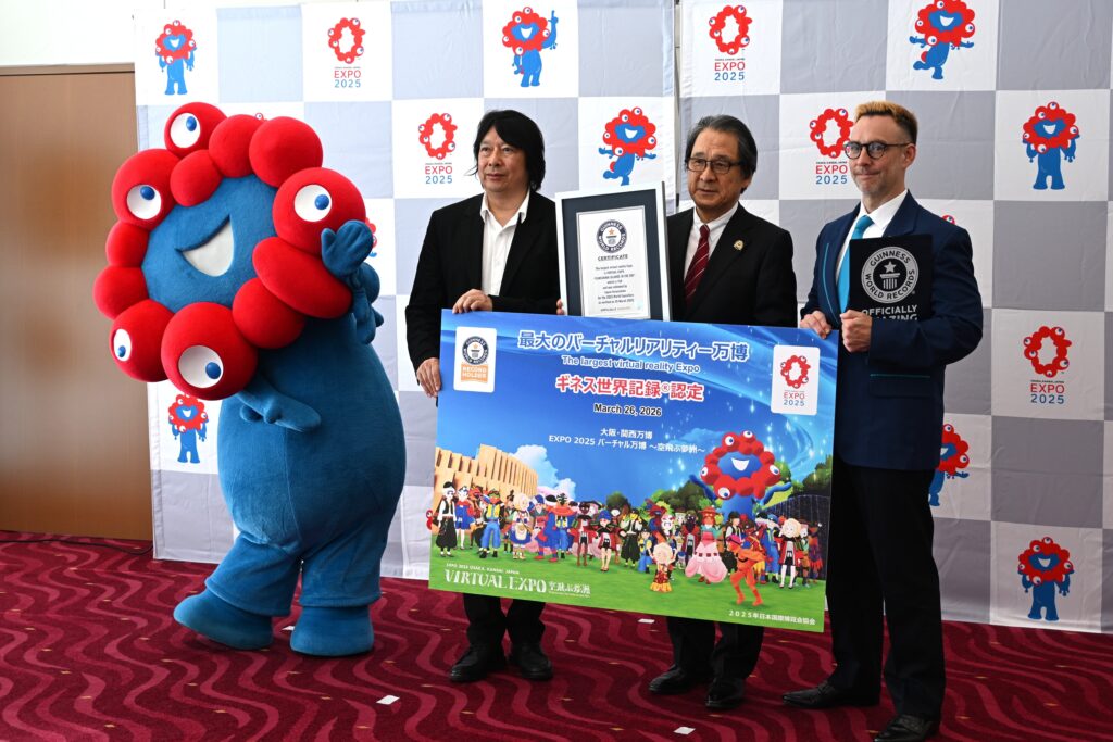 万博閉幕およびバーチャル万博サービス終了からもうすぐ半年を迎える3月26日に、2025年日本国際博覧会協会(博覧会協会)はバーチャル万博がギネス世界記録に認定されたことを発表しました。認定証授与式では、『バーチャル万博レガシーアプリ』もお披露目され、今後の博覧会協会主催イベント等で再びバーチャル万博の会場散策を楽しめるようになります。